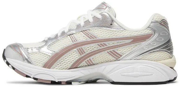 Launching as part of a four-piece footwear collection, the Kith x ASICS Gel Kayano 14 ‘Cream Antler’ delivers a subtle colorway of the retro running shoe. Ventilated off-white mesh is utilized on the upper, contrasted by metallic silver synthetic leather overlays and signature side stripes in a dull mauve hue. ASICS branding appears on the tongue, while ‘Gel Kayano 14’ is inscribed on the lateral heel. The sneaker rides on a full-length EVA midsole with visible Gel cushioning in the heel.